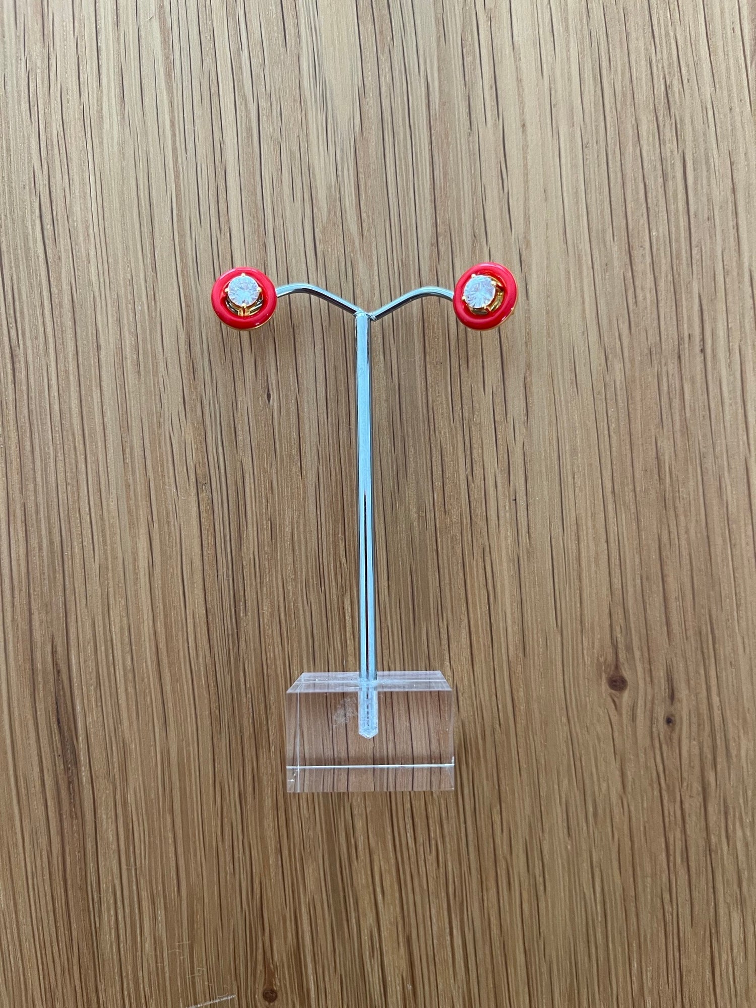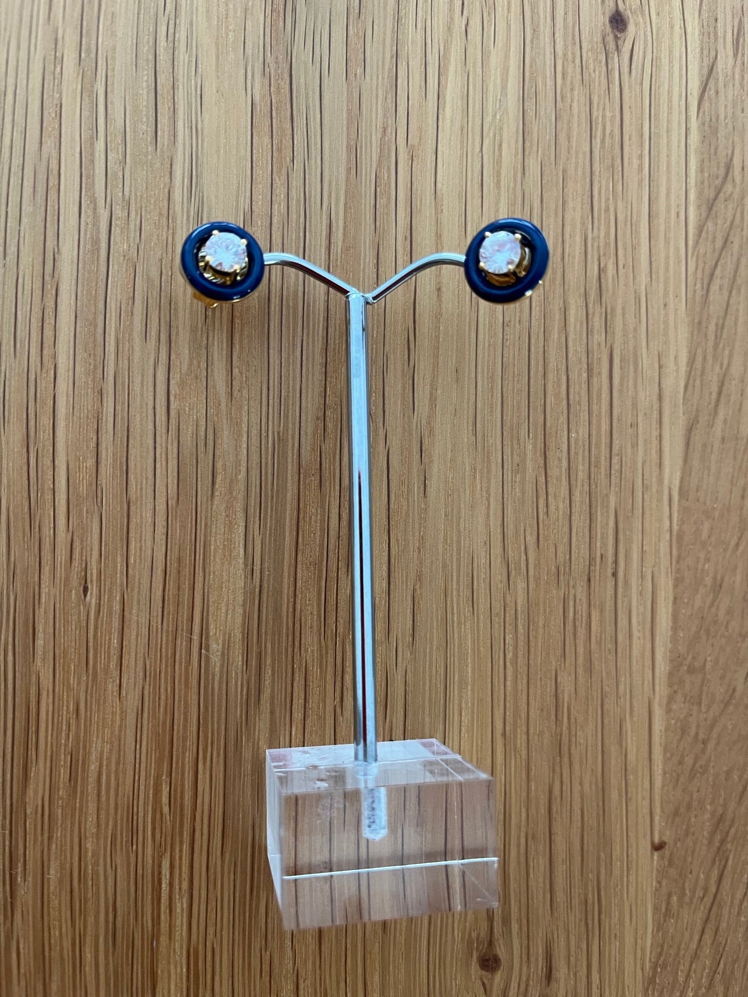 From MINA Jaipur - we have sourced a classic cubic zirconia stud earring surrounded by a hand painted circle of enamel.